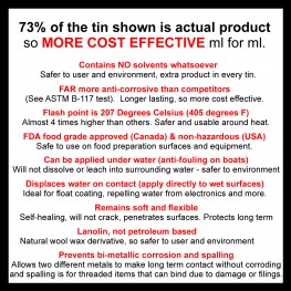 | Water Replacement: | Displaces water from all metal surfaces (MIL-C-23411,Paragraph 3.6). | ||||||